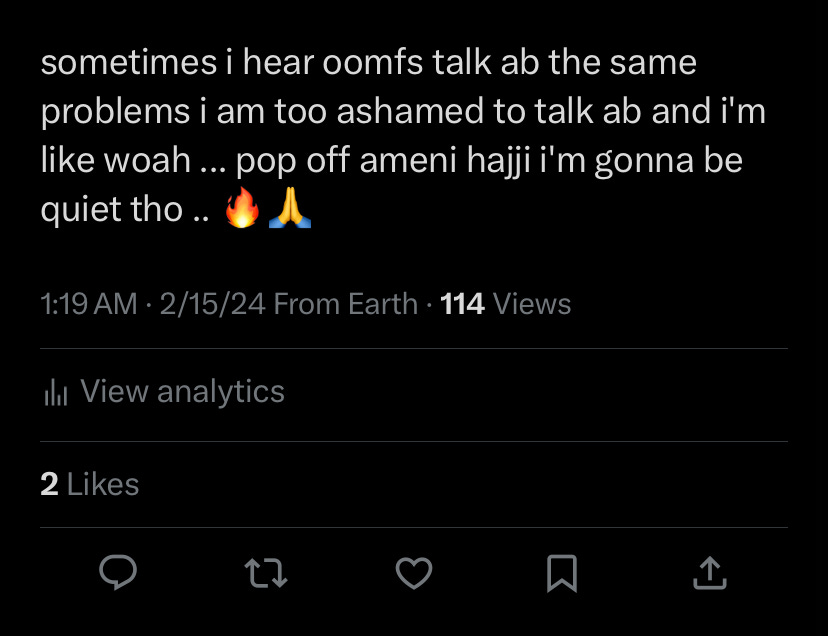 I have very little clue about what goes behind this abstraction compulsion, except that I think I operate, to a large extent, on shame. That is probably also why the kinder words of a friend is much harder to digest than those of others, because the other person speaks to me the same way I speak to myself — it is just so familiar. Shame, rational or otherwise, just seems to wield a greater power over me than anything else. Things I say or do are almost always misted with the same deprived feeling, as if even though me and the next person are in the same place, I somehow got there through much more deprivation, and owing to more egregious personal shortcomings. I know not how this works in my mind but only that it is just does, decidedly. I tweeted this the other day when it dawned on me: